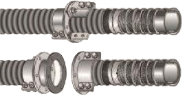 Муфта с фланцами для шлангов Volga fra выполнена из двух полуоболочек. Они имеют особую форму и идеально сочетаются