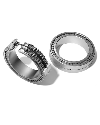 Двухрядный цилиндрический роликоподшипник, плавающего типа, три борта на внутреннем кольце, безбортовое наружное кольцо, стопорное кольцо между рядами тел качения, полный комплект роликов, IDC