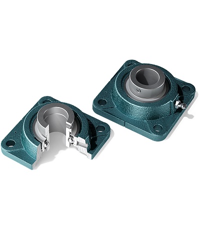 Самоцентрирующийся подшипниковый узел с радиальным шарикоподшипником EX2.. с эксцентриковым стопорным кольцом и защитными шайбами с обеих сторон, фланцевый корпус FE2.. из чугуна, SNR