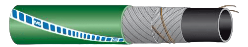 зеленое, гладкое из синтетического каучука EPDM (с отпечатком текстильного бандажа), устойчивое к химическим продуктам, истиранию, атмосферным воздействиям и озону