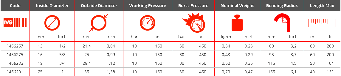 рукав предназначенный для мытья горячей водой оборудования в сфере пищевой промышленности, устойчив к особо высоким температурам. Пригоден для очистительных работ на молочных фермах, консервных заводах, мясокомбинатах и остальных пищевых сфер. Верхнее покрытие рукава особо масложироустойчиво.